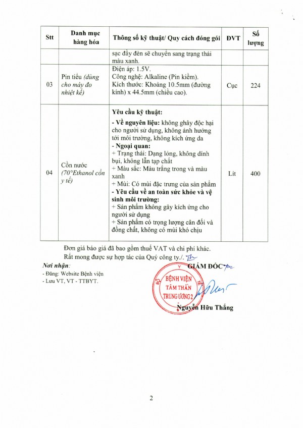 Mời chào giá: Pin sạc, cục sạc pin (dùng cho máy đo huyết áp tự động) và Pin tiểu (dùng cho máy đo nhiệt kế), Cồn nước 70 độ Ethanol cồn y tế)