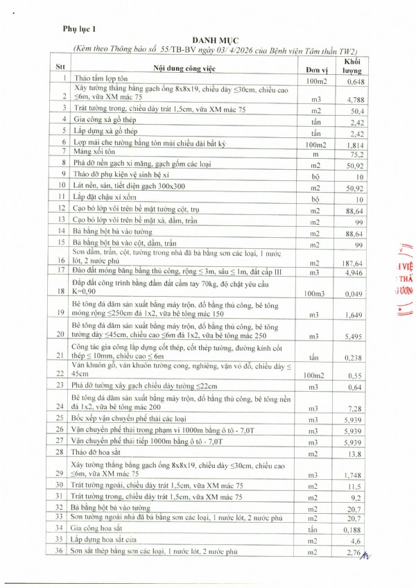 Thông báo Về việc mời chào giá thực hiện sửa chữa cửa, sân nền Khoa Tâm thần truyền nhiễm