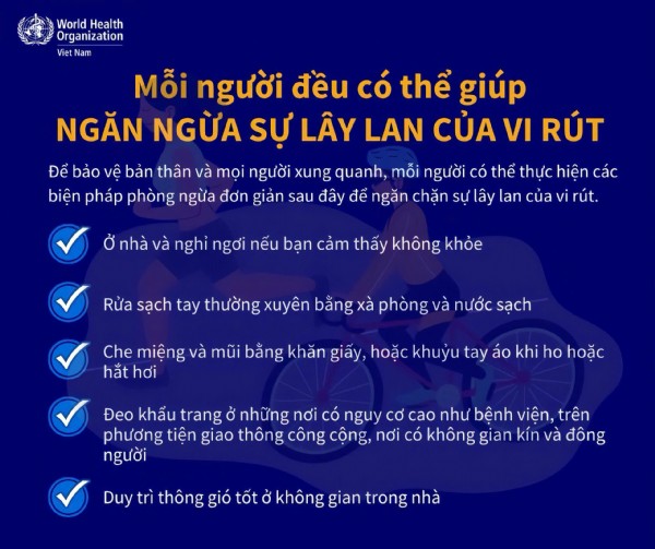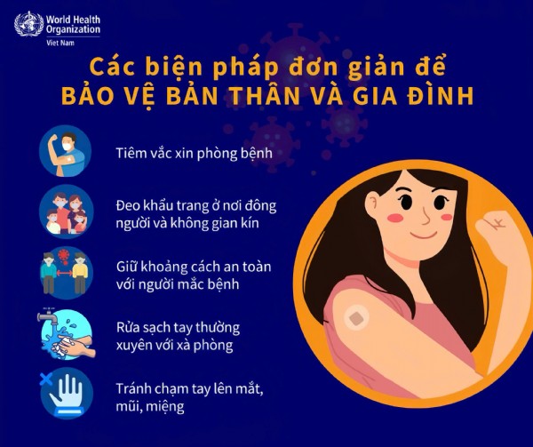 1. Đảm bảo vệ sinh cá nhân: rửa tay thường xuyên, che miệng khi ho hoặc hắt hơi, không đưa tay lên mắt, mũi, miệng khi chưa rửa sạch.