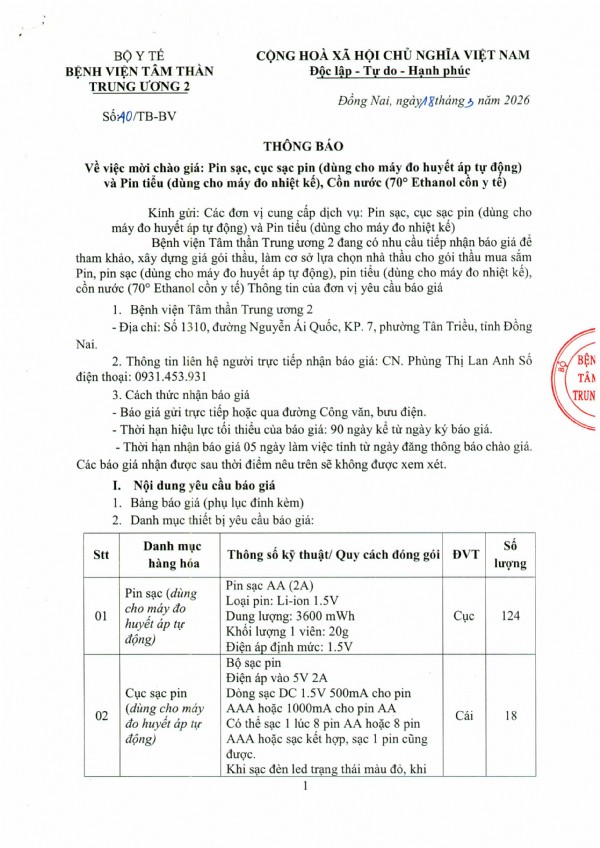 Mời chào giá: Pin sạc, cục sạc pin (dùng cho máy đo huyết áp tự động) và Pin tiểu (dùng cho máy đo nhiệt kế), Cồn nước 70 độ Ethanol cồn y tế)