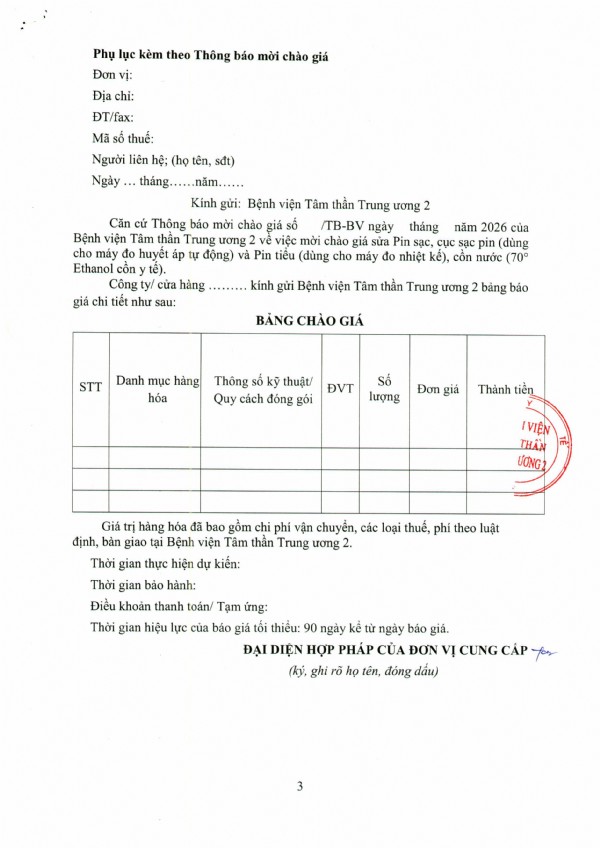 Mời chào giá máy in, máy in màu, máy Scan, màn hình máy vi tính, thùng CPU và linh kiện máy vi tính tại Bệnh viện Tâm thần Trung ương 2