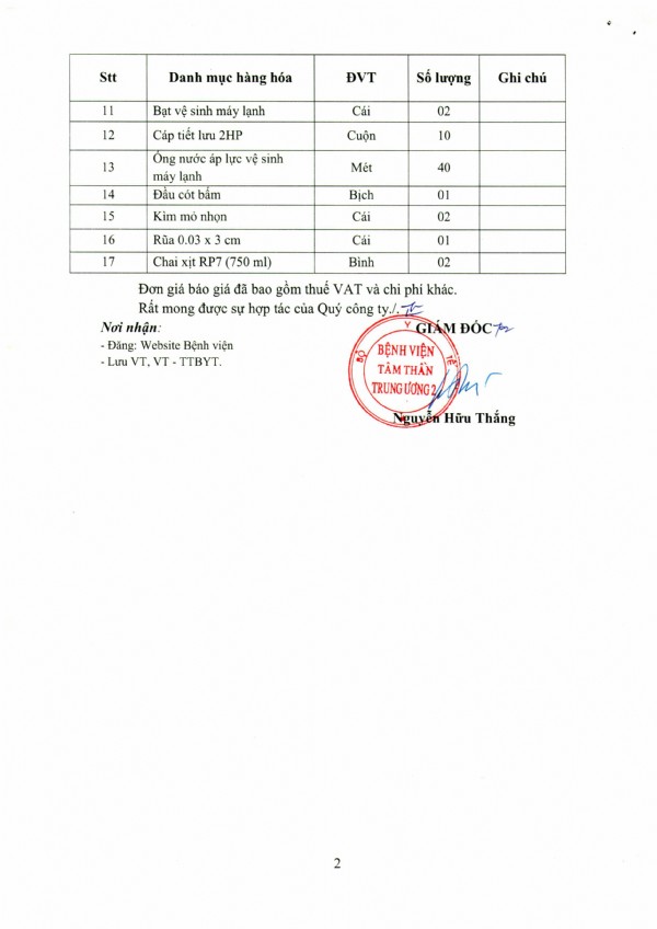 Mời chào giá máy in, máy in màu, máy Scan, màn hình máy vi tính, thùng CPU và linh kiện máy vi tính tại Bệnh viện Tâm thần Trung ương 2