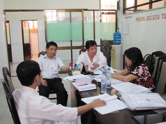 | Đoàn Kiểm tra làm việc với ban Giám đốc bệnh viện |